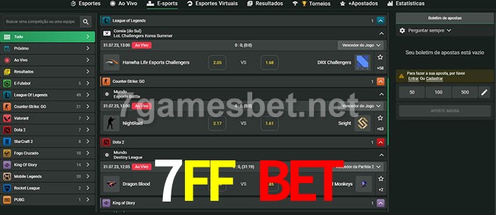 O 7FF Bet oferece uma grande seleção de opções de apostas em e-sports com probabilidades competitivas